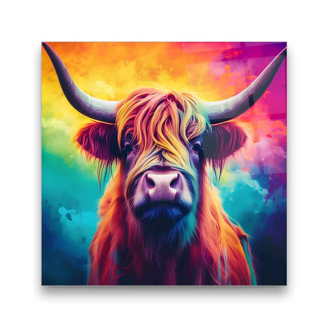 Colorful Bull - Square Wall Glass Art