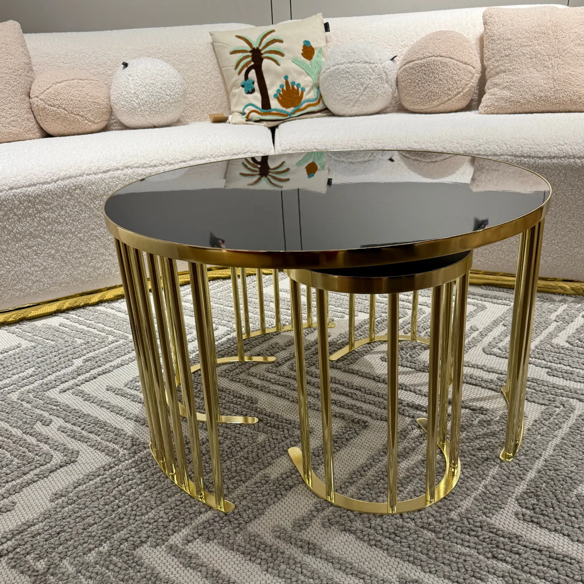 This nesting coffee table set blends artistic design with practical use, making it a must-have for luxury interiors. Whether you seek versatility, elegance, or a bold statement piece, this handcrafted set is the perfect choice.