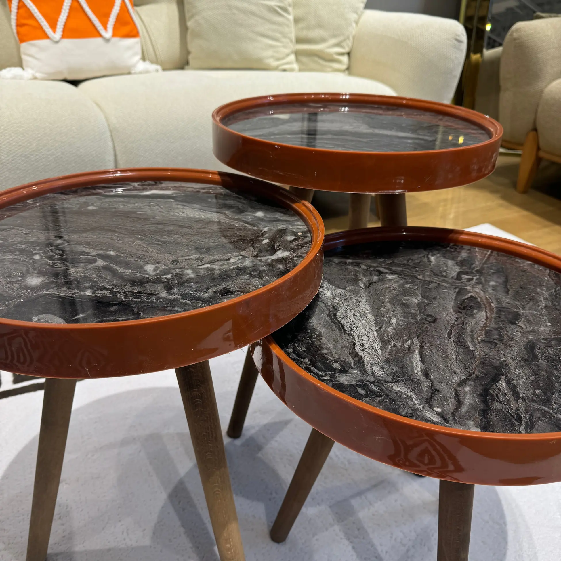 Elevate your home decor with the Black Marble Design Nesting Table Set, a modern blend of luxury and functionality perfect for contemporary homes. Featuring a unique black marble-patterned surface with eye-catching orange edges, this set adds a sophisticated accent to any living room, bedroom, or office.