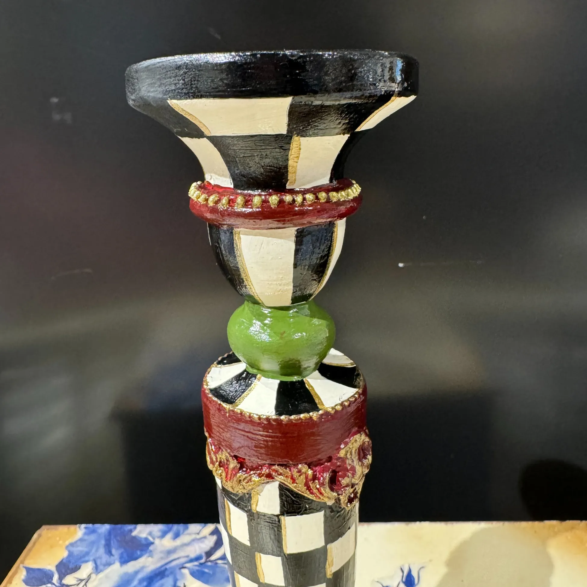 Ideal for those who appreciate handmade artistry, luxury candle holders, unique home decor, and collectible handcrafted pieces, this black and white checkered candle holder is a timeless addition to any sophisticated interior.