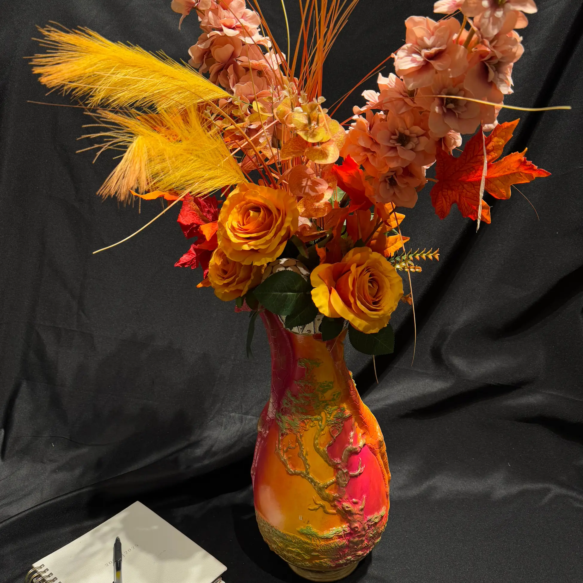 This large floral arrangement is perfect for dining tables, entryways, or living room spaces. Its bold colors and artistic design add sophistication and charm to any modern interior.