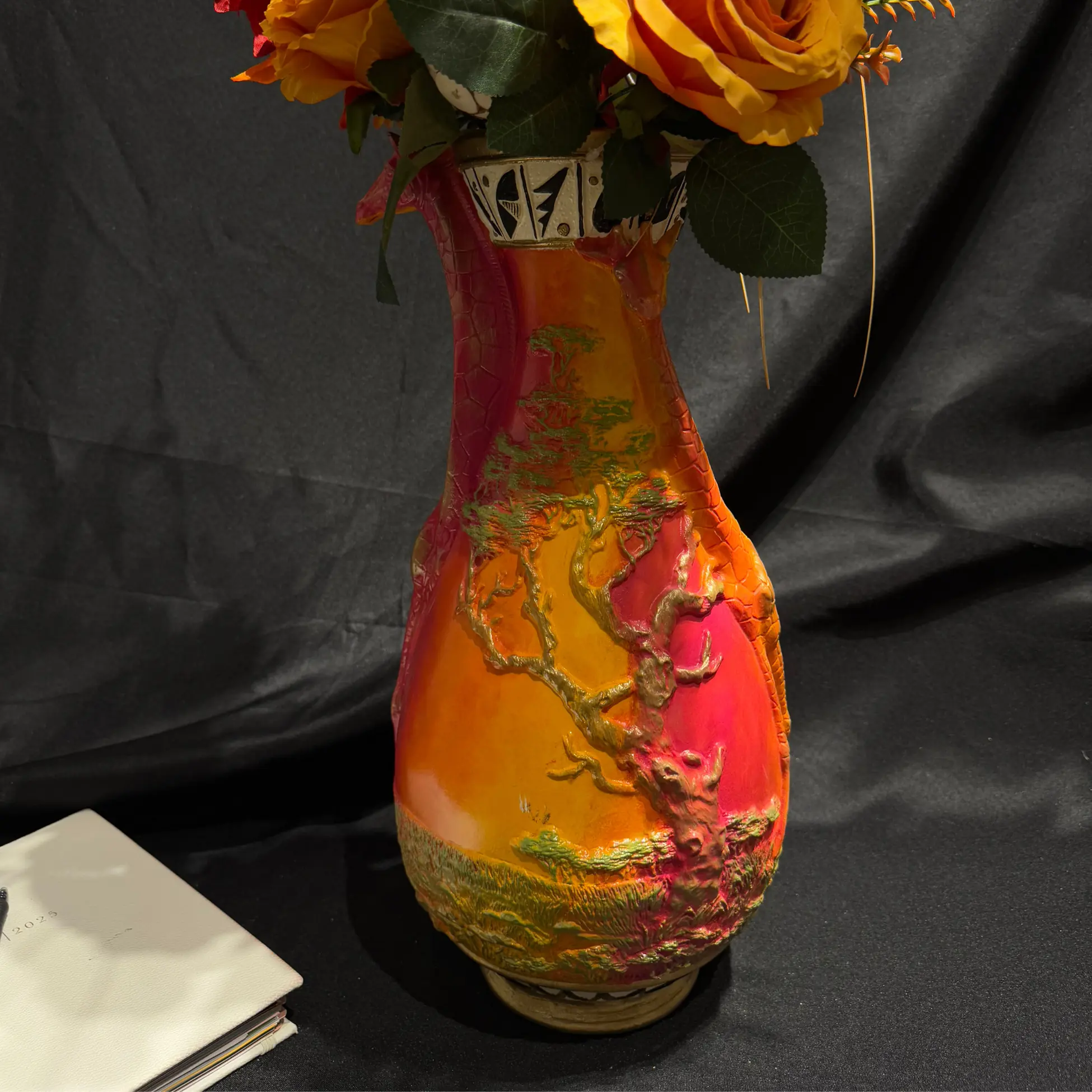 Crafted with premium artificial flowers and a high-quality handmade vase, this arrangement offers long-lasting beauty and elegance. The durable vase features an artistic sunset finish that ensures a timeless aesthetic.
