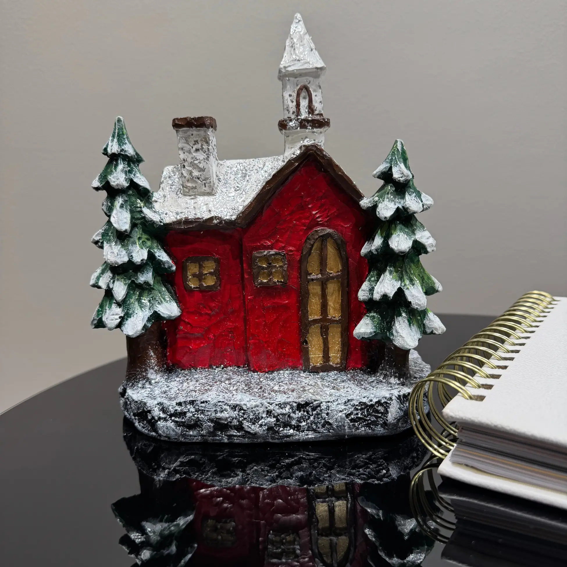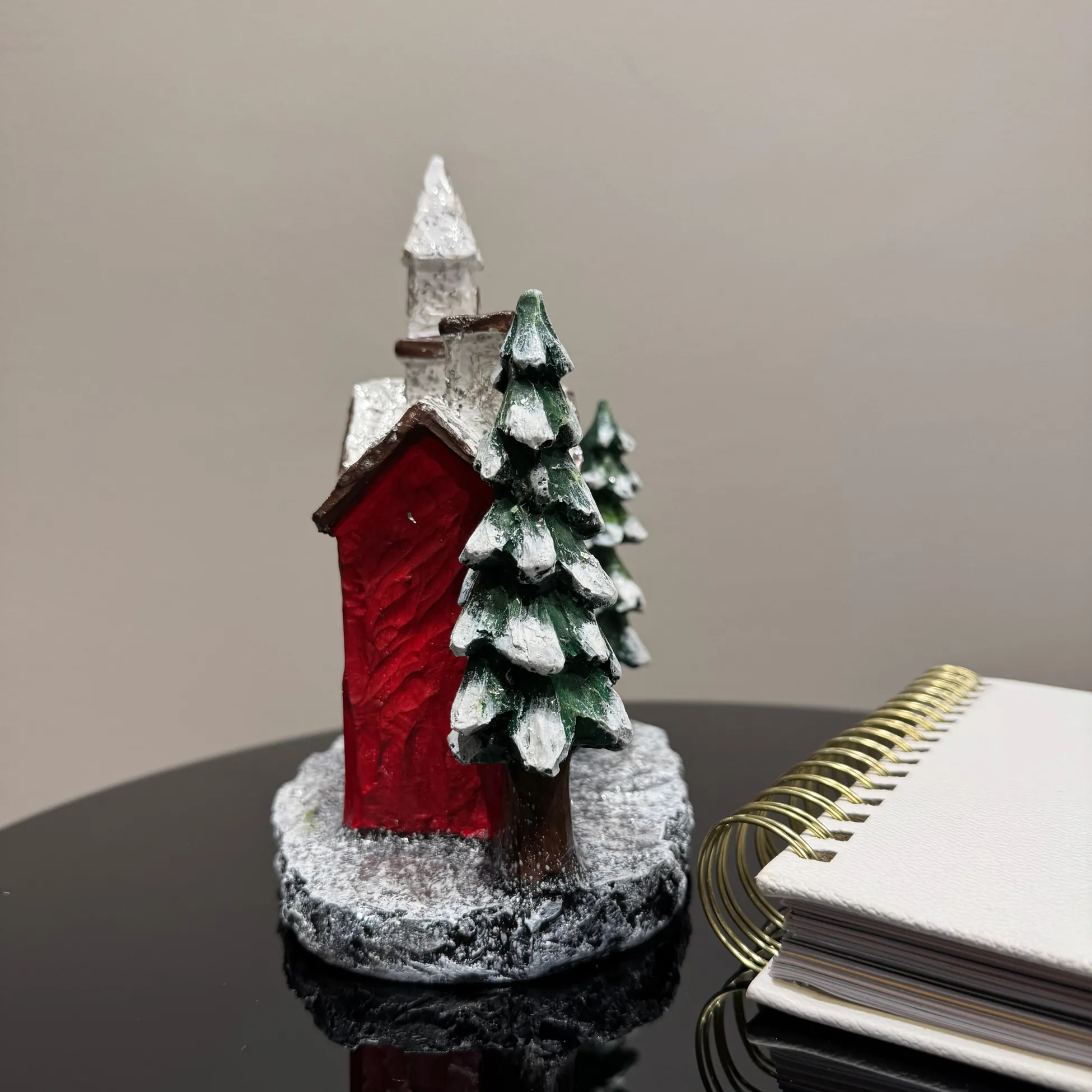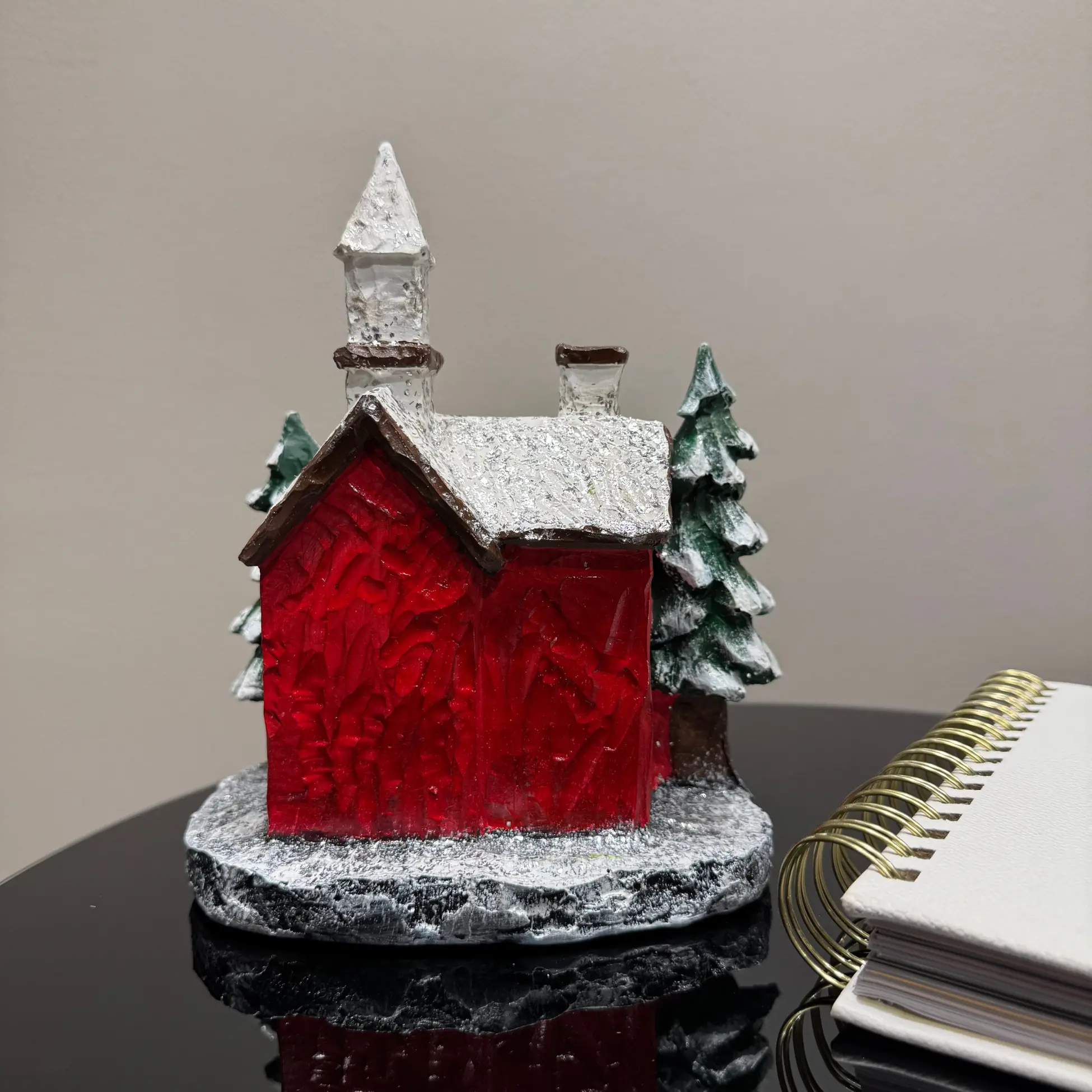 Our handmade resin Christmas house figurine is crafted with high-quality materials, ensuring durability and long-lasting beauty. Unlike fragile ceramic alternatives, this decorative holiday home is sturdy and resistant to cracks or chips. It is meticulously hand-painted with acrylic paint, adding depth and charm to its snowy red cottage design. This unique handmade piece serves as both a holiday accent and a collectible winter village house for those who appreciate fine craftsmanship.