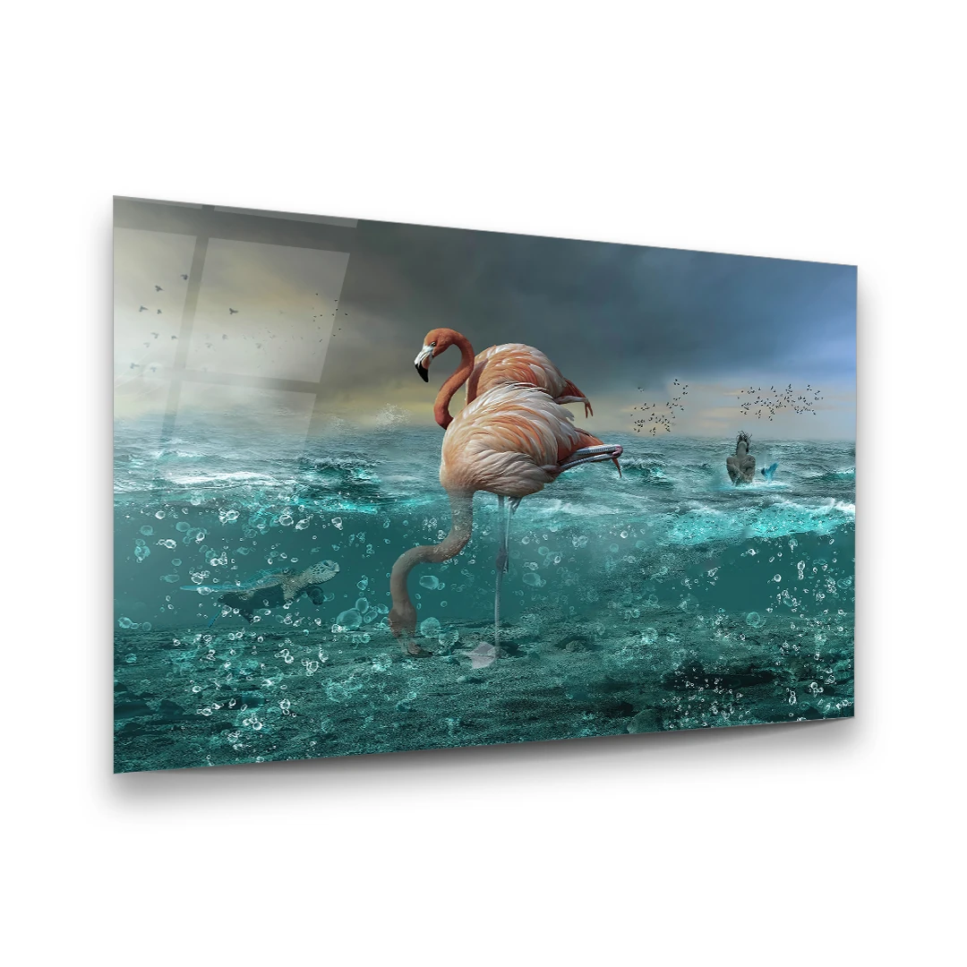 Flamingos and Sea Manipulation - Horizontal Wall Glass Art