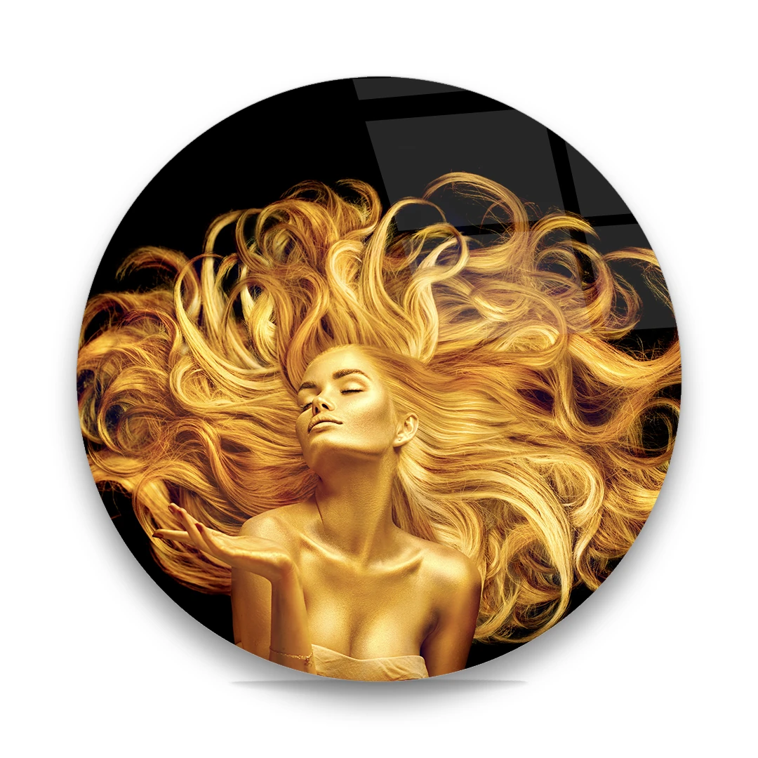 Golden Woman - Circle Glass Art