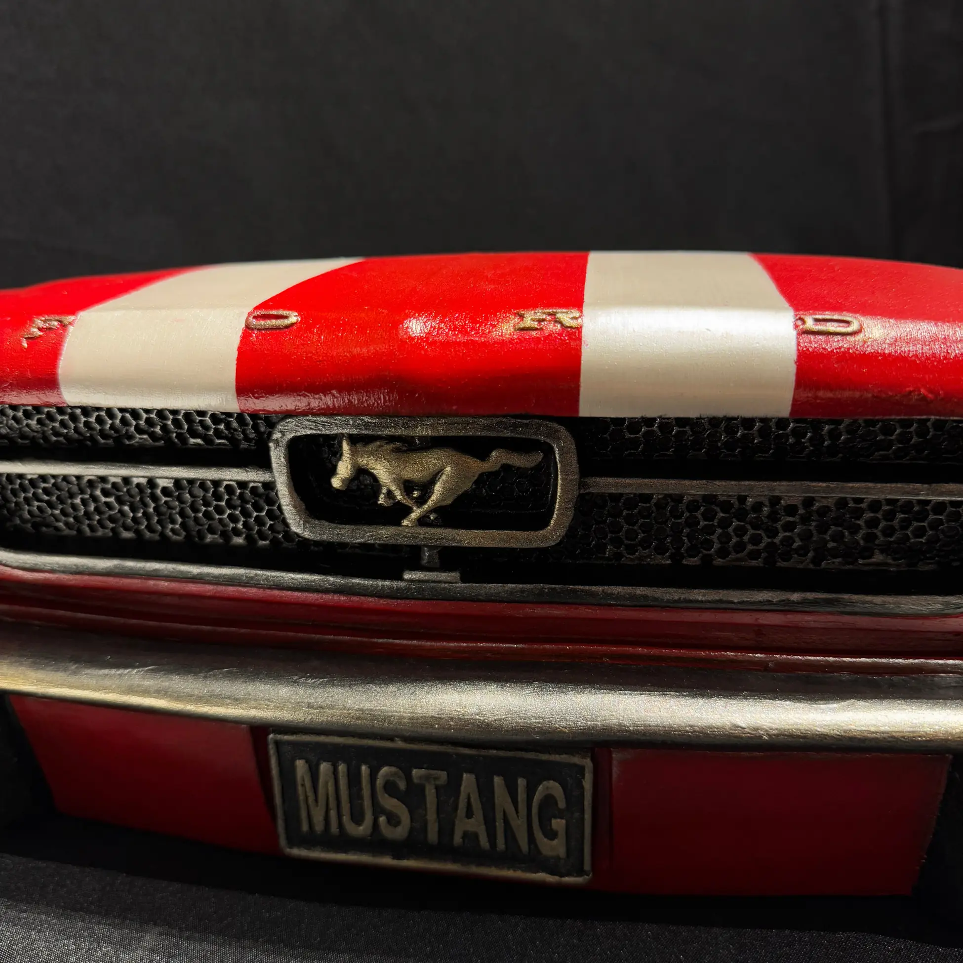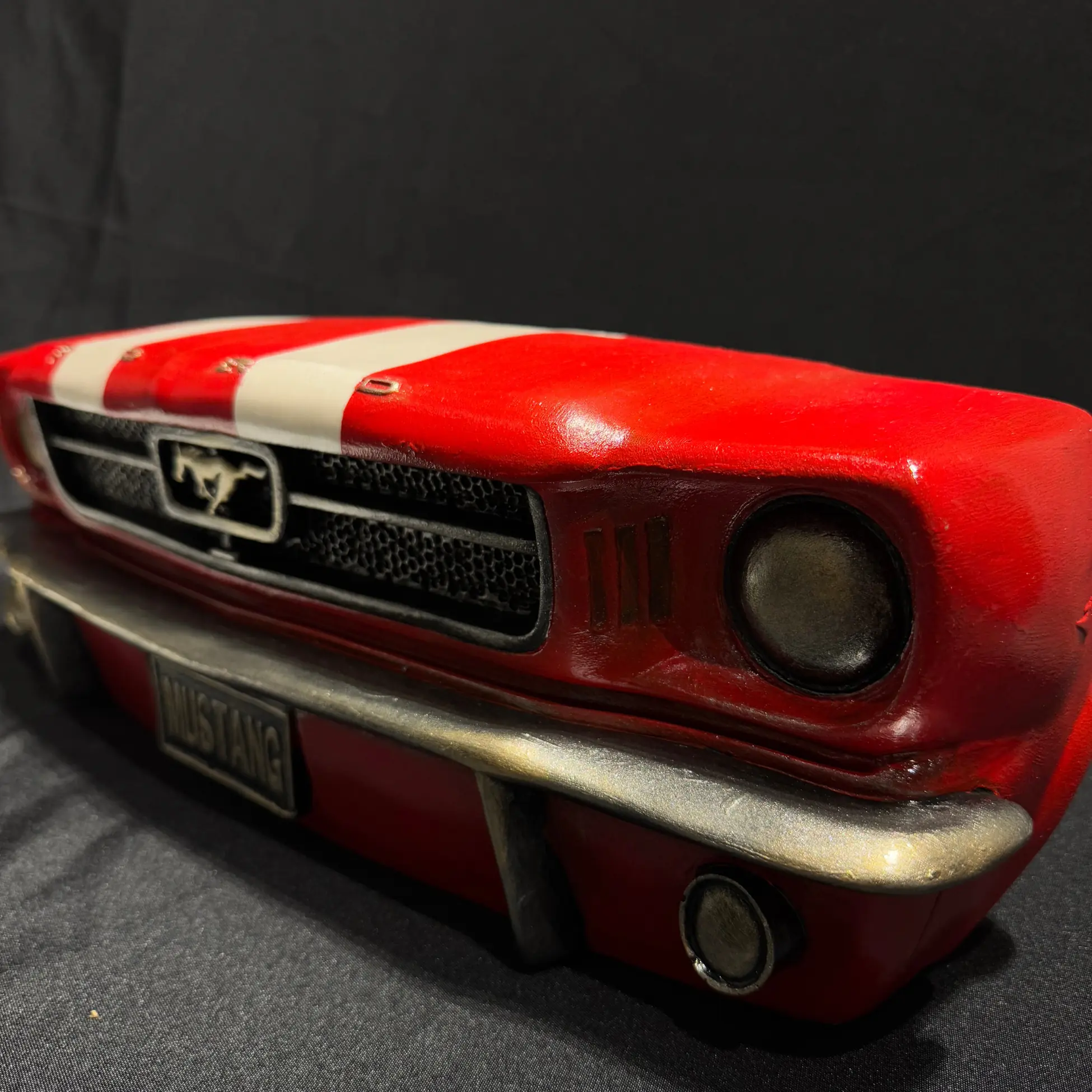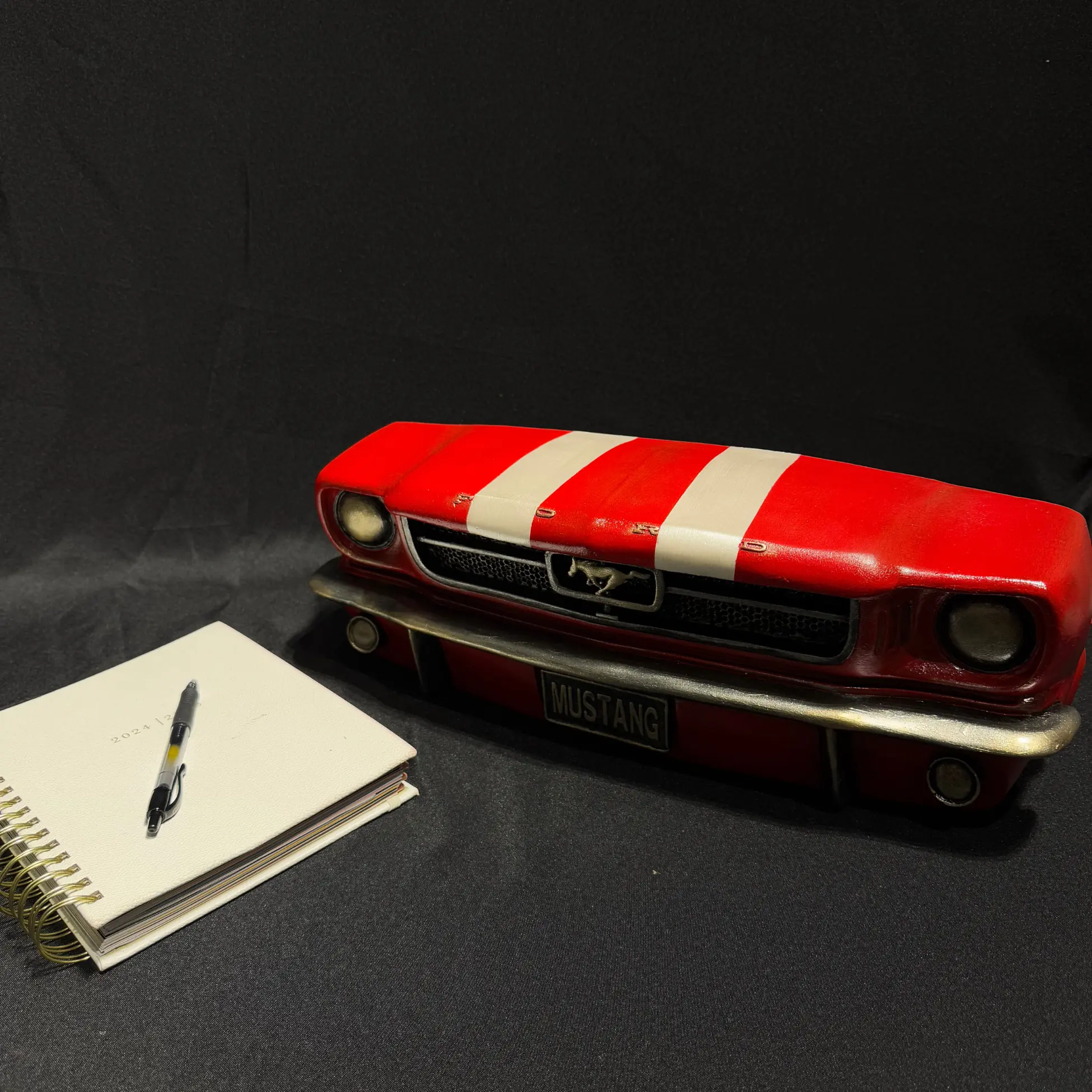 Explore our collection of automotive-inspired sculptures and unique decor items. The Handmade Red Mustang Front Sculpture adds a bold and vintage touch to any space, perfect for tabletop, shelf, or wall display.