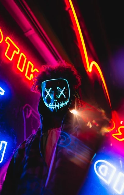 Neon Mask - Rectangle Glass Art