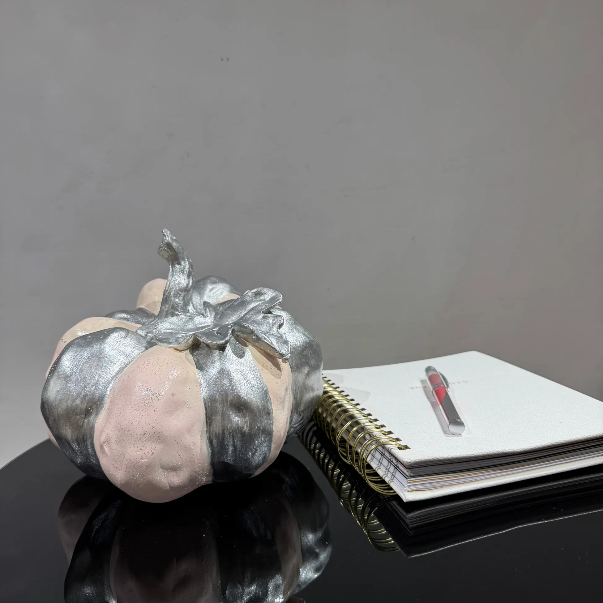 Explore our collection of custom polyester sculptures, perfect for adding elegance to your seasonal or everyday home decor. Whether you’re looking for festive centerpieces, patio accessories, or indoor art pieces, our handmade creations are ideal. This pink platinum pumpkin sculpture is a timeless addition to any modern or minimalist setting.