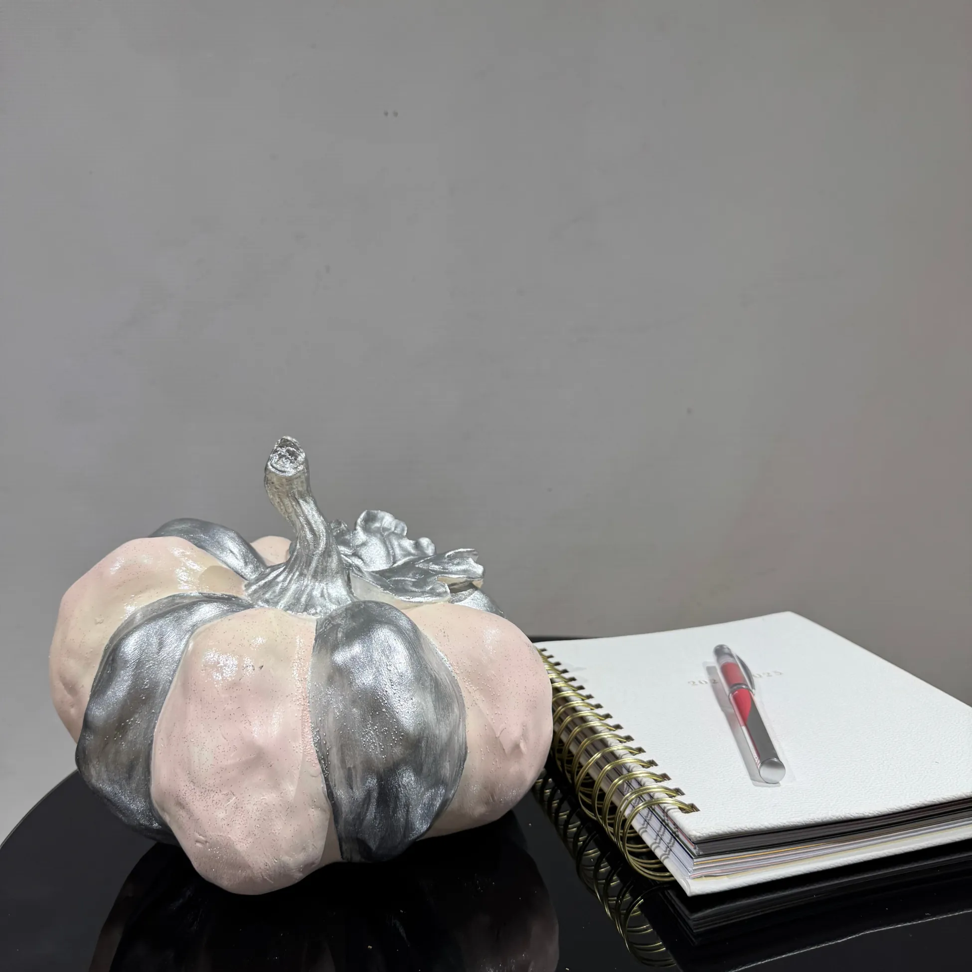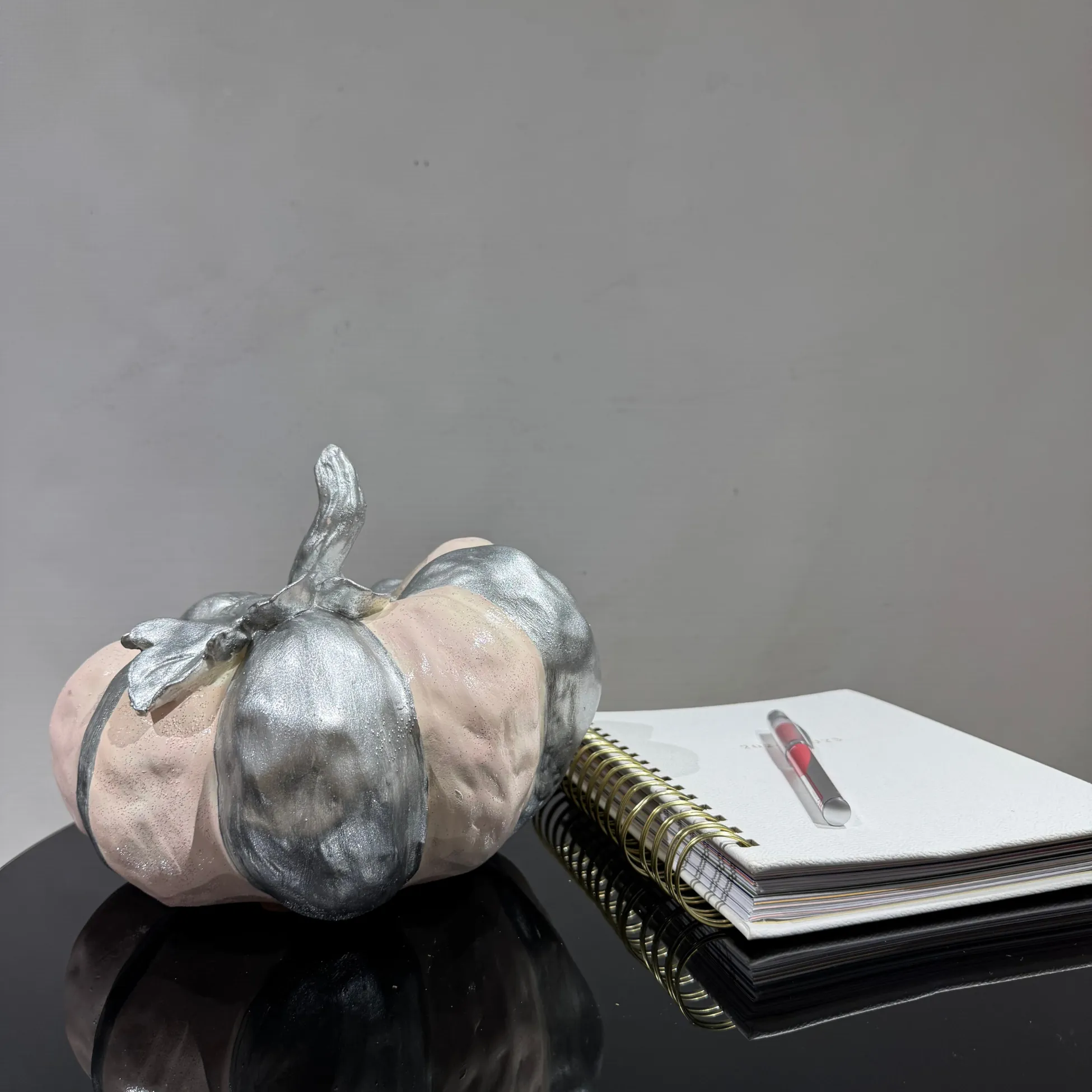 Our product photos are exclusive to Ferozzi. Unauthorized use of these images is strictly prohibited. The sale includes only the pink platinum pumpkin sculpture as shown in the photos; other decorative items are not included.