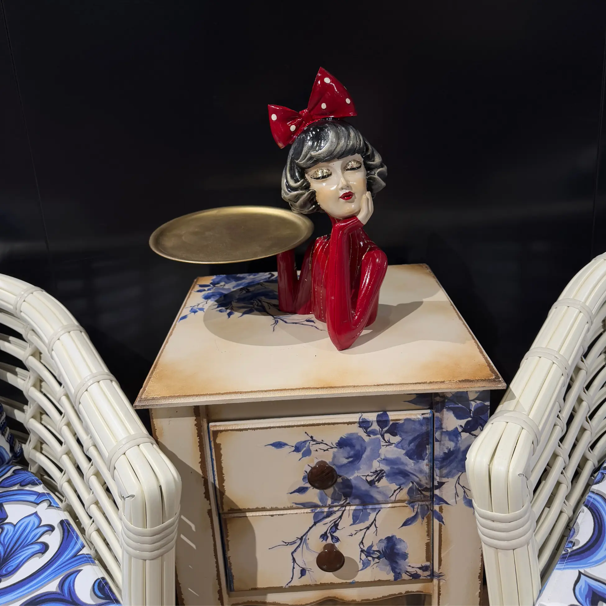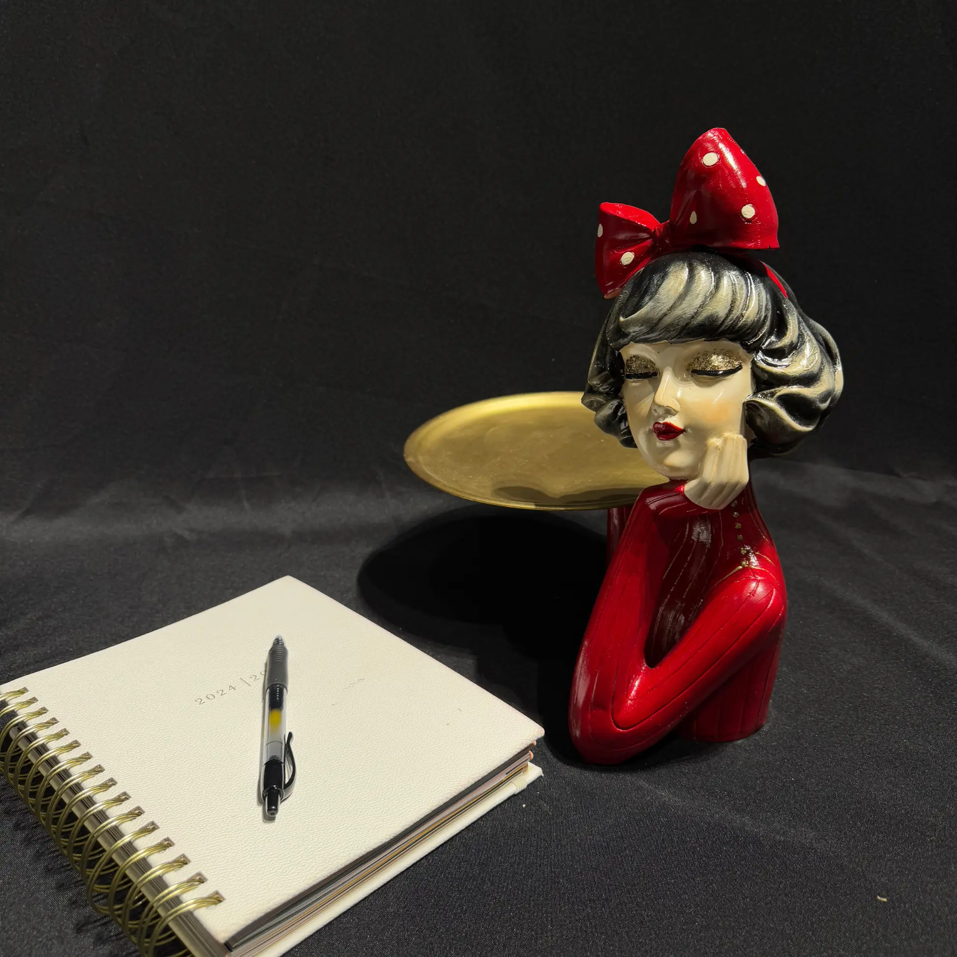 Explore our collection of handmade sculptures and unique figurines. The Red Sweater Figurine with Serving Tray Handmade adds warmth and charm to tables, shelves, or mantels, making it a versatile piece for modern and classic interiors.