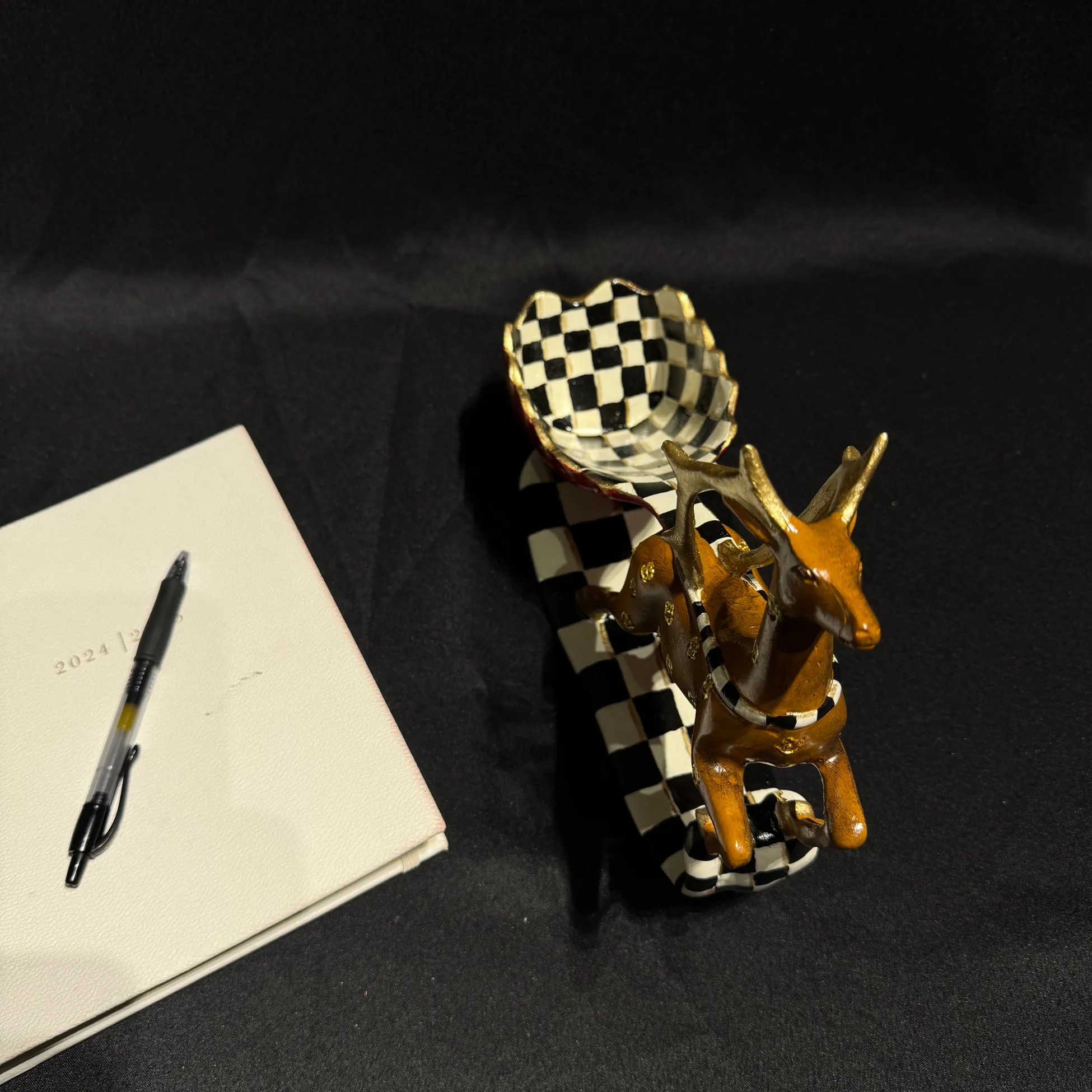 Handcrafted from premium resin, this piece is painted with high-quality, fade-resistant paints to maintain its vibrant gold and checkered design over time.