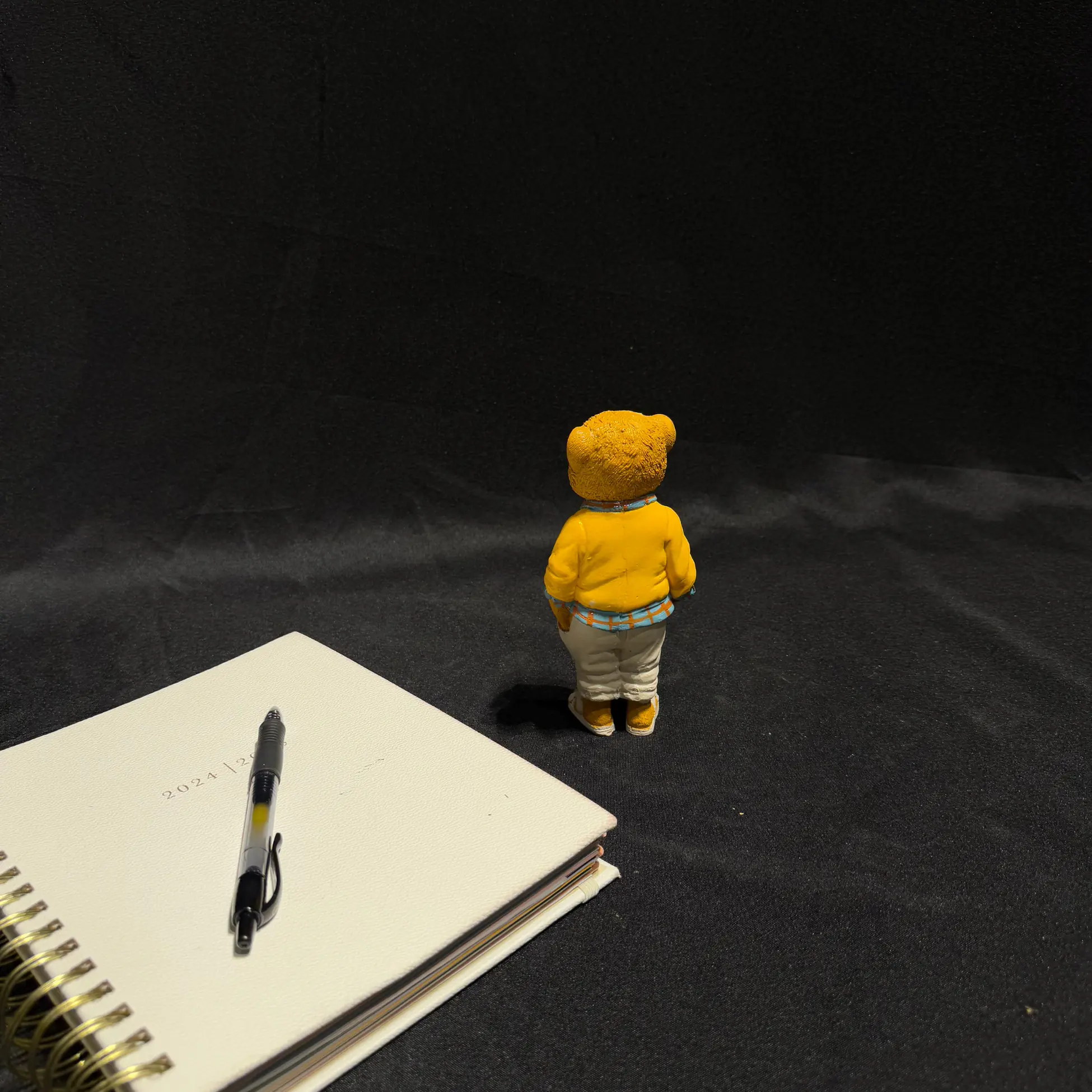 Whether displayed on a bookshelf, coffee table, or mantelpiece, this teddy sculpture brings a whimsical touch to any room.