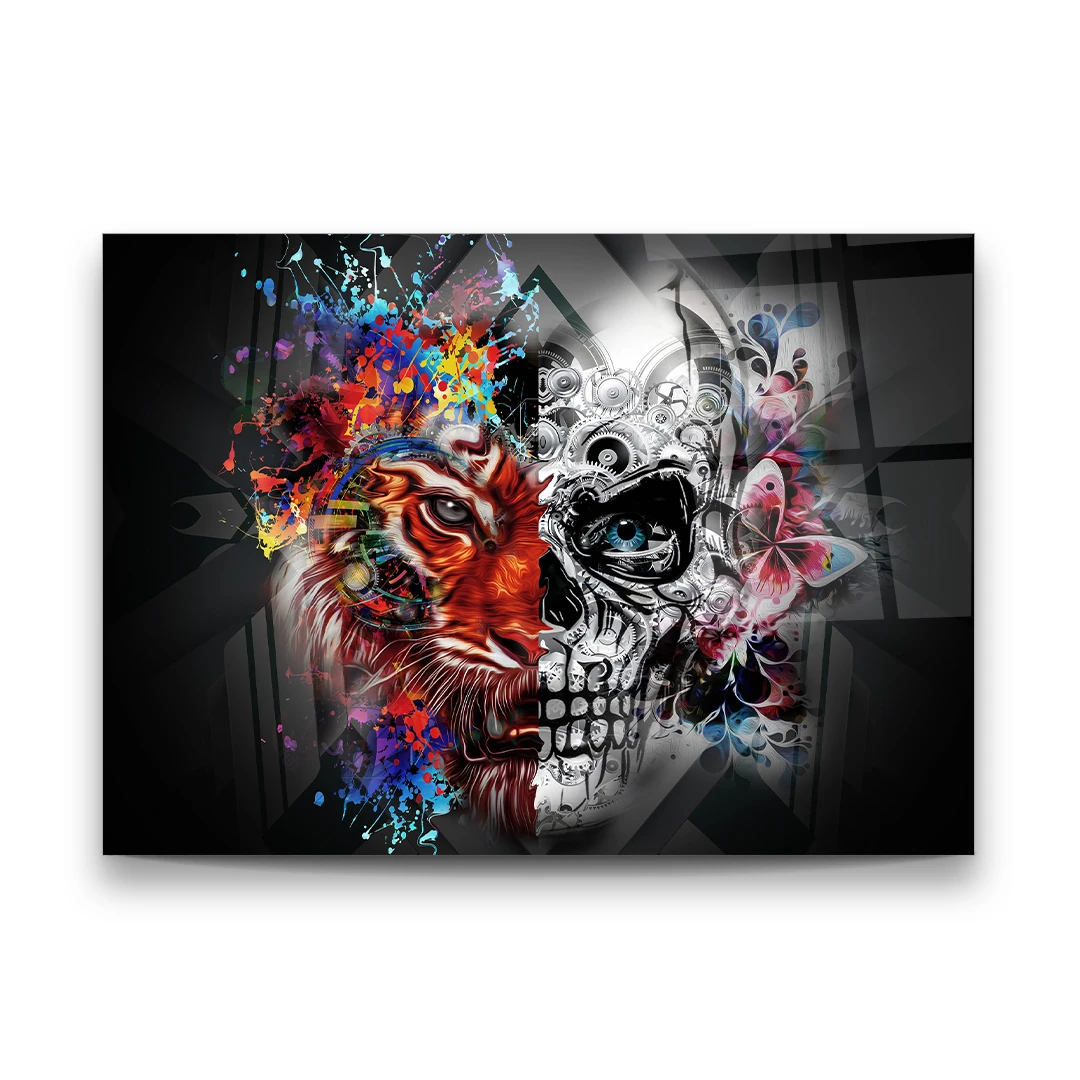 Tiger and Skull Ornament - Horizontal Glass Art