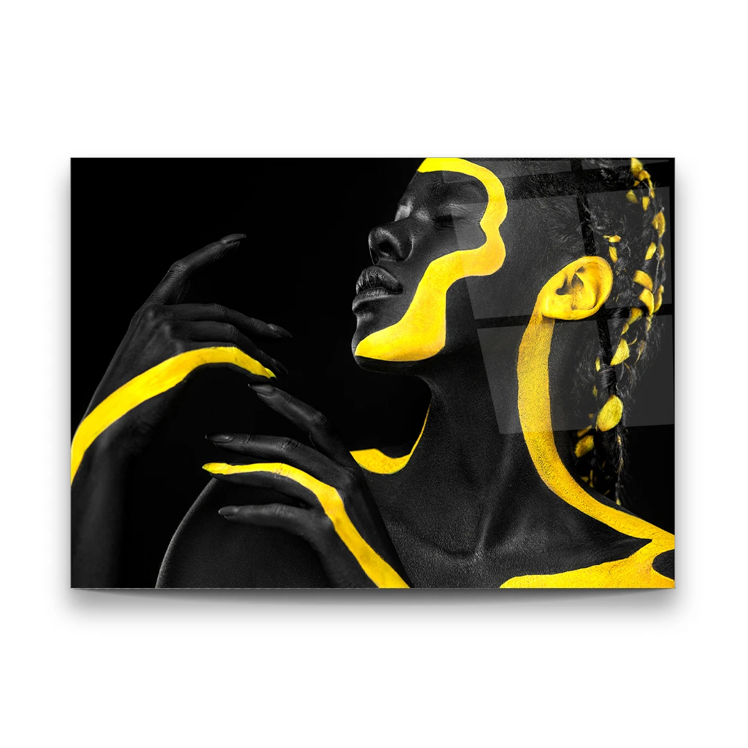 Yellow Striped Woman - Horizontal Wall Glass Art