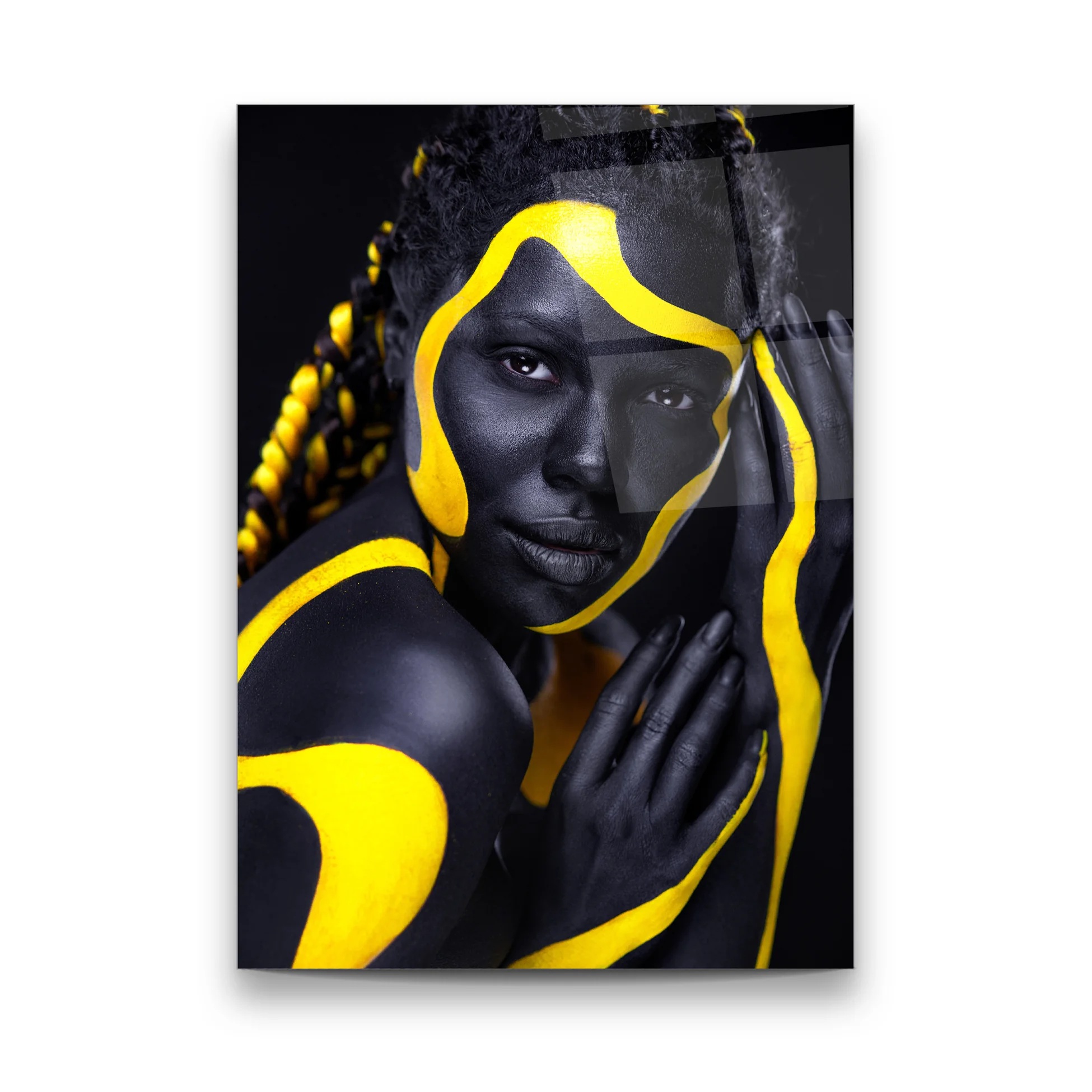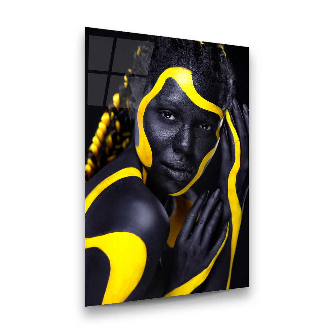 Yellow Striped Woman - Rectangle Wall Glass Art